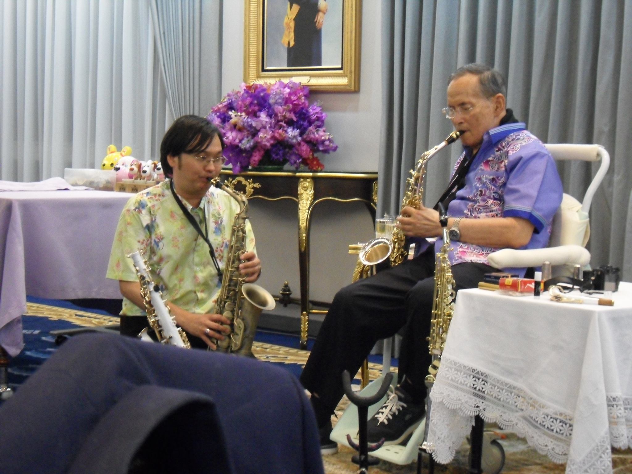 พระบาทสมเด็จพระเจ้าอยู่หัว ทรงมีพระปรีชาสามารถทางดนตรีเป็นพิเศษ ทั้งคลาริเนตและแซกโซโฟน มีนักดนตรีที่มีชื่อเสียงของโลก เดินทางมาแสดงในเมืองไทย และได้บรรเลงร่วมวงกับพระองค์ท่าน ทรงบรรเลงอย่างคีตปฏิภาณ (Improvisation) ได้อย่างคล่องแคล่ว และฉับพลัน อาทิ เบนนี่ กูดแมน (Benny Goodman) นักคลาริเนต แจ๊ก ทีการ์เดน (Jack Teagarden) ซึ่งเป็นนักระนาดฝรั่ง ลีโอเนล แฮมพ์ตัน (Lionel Hampton) นักทรอมโบน นอกจากนั้นยังมีแสตน เก็ตส์ (Stan Getz) ซึ่งเป็นนักแซกโซโฟนเอกของโลกอีกคนหนึ่ง