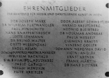 กรุงเวียนนา ประเทศออสเตรีย ซึ่งมีชื่อว่าเป็นแหล่งกำเนิดของนักดนตรีที่สำคัญ และคีตกวีเอกของโลก ได้ยกย่องพระปรีชาสามารถด้านการดนตรีในพระบาทสมเด็จพระเจ้าอยู่หัวโดยเฉพาะ คือ เมื่อครั้งที่เสด็จฯ เยือนประเทศสาธารณรัฐออสเตรียอย่างเป็นทางการในเดือนตุลาคม พ.ศ. 2507 วงดุริยางค์ซิมโฟนี ออเคสตร้า ควบคุมโดย ไฮน์ วัลลเบอร์ก แห่งกรุงเวียนนาได้อัญเชิญเพลงพระราชนิพนธ์ ชุด "มโนราห์" "สายฝน" "ยามเย็น" "มาร์ชราชนาวิกโยธิน" และ "มาร์ชราชวัลลภ" ไปบรรเลง ณ คอนเสิร์ตฮอลล์ กรุงเวียนนา เมื่อวันที่ 3 ตุลาคม พ.ศ. 2507 พร้อมกันนี้สถานีวิทยุกระจายเสียงของรัฐบาลออสเตรียได้ส่งกระจายเสียงเพลงและเสนอข่าวนี้ไปทั่วประเทศ หลังจากนั้นอีก 2 วัน คือวันที่ 5 ตุลาคม พ.ศ. 2507 สถาบันดนตรีและศิลปะแห่งกรุงเวียนนาได้ถวายพระเกียติให้ดำรงตำแหน่งสมาชิกกิตติมศักดิ์ หมายเลขที่ 23 ดังปรากฏพระปรมาภิไธยจารึกบนแผ่นหินอ่อนของสถาบันอันเก่าแก่ของยุโรปนี้ ประธานสถาบันได้กล่าวสดุดีพระบาทสมเด็จพระเจ้าอยู่หัวในฐานะที่ทรงเป็นผู้สร้างสัมพันธ์อันดียิ่งระหว่างดนตรีตะวันออกกับตะวันตก และทรงพระราชนิพนธ์เพลงด้วยพระปรีชาสามารถ นับเป็นครั้งแรกที่พระมหากษัตริย์แห่งทวีปเอเชีย ทรงมีบทบาทสำคัญยิ่ง ณ ศูนย์กลางแห่งการดนตรีในทวีปยุโรป ทรงเป็นชาวเอเชียพระองค์แรกที่ทรงได้รับการถวายพระเกียรติให้ดำรงตำแหน่งสมาชิกกิตติมศักดิ์ขณะที่ทรงมีพระชนมพรรษาเพียง 37 พรรษา พสกนิกรชาวไทยทุกคนไม่เพียงแต่ชื่นชมในพระเกียรติยศทางดนตรีที่ทรงได้รับจากนานาประเทศเท่านั้น แต่ยังภาคภูมิใจในความสำเร็จจากการเสด็จพระราชดำเนินกระชับสัมพันธไมตรีระหว่างประเทศด้วย
