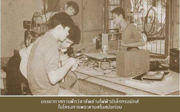 “ช่องทางช่วยเหลือ” ในยุคสมัยนั้นไม่สามารถจัดผ่านระบบการศึกษาปกติได้เพราะโรงเรียนวิชาชีพ เช่น โรงเรียนอาชีวศึกษาโรงเรียนการช่าง วิทยาลัยเทคนิค สถาบันเทคโนโลยีต่างๆ ล้วนมีข้อกำหนดคุณสมบัติของผู้เรียน เช่น กำหนดพื้นฐานความรู้ อายุ เป็นต้นส่วนการศึกษาสำหรับผู้ใหญ่ก็มีเพียงแก้ไขปัญหาผู้ใหญ่ไม่รู้หนังสือให้อ่านออกเขียนได้และเป็นพลเมืองดี ไม่ได้มุ่งเน้นเรื่องอาชีพการงาน พล.ต.ต. สุชาติ ซึ่งถวายงานด้านวิทยุสื่อสารเล่าว่า วันหนึ่งเมื่อพระบาทสมเด็จพระเจ้าอยู่หัวเสด็จฯ กลับจากการพระราชทานปริญญาบัตรแก่บัณฑิตสถาบันเทคโนโลยีพระจอมเกล้าพระนครเหนือ (วันที่ ๑๘ ตุลาคมพ.ศ. ๒๕๑๘ – ผู้เขียน) ได้มีพระราชกระแสรับสั่งถึงพระราชดำริในการช่วยเหลือผู้ด้อยโอกาสที่ใฝ่รู้อยากเรียนวิชาชีพว่าถ้าเขาพอใจจะเรียนให้นำมาฝึกอบรมโดยไม่จำกัดพื้นฐานความรู้ไม่จำกัดเพศ วัย ศาสนา ใช้วิธีเลี้ยงในบ้านให้เขากินฟรี อยู่ฟรี สอนฟรี เจ็บป่วยมีหมอหลวงรักษาให้ มีโอกาสก็อบรมไป สอนไป จนกระทั่งเขามีความรู้พอไปประกอบอาชีพได้
