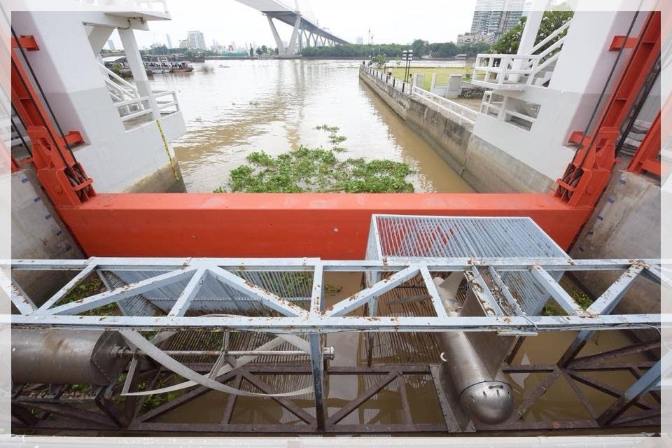“…ที่พระประแดง ที่มีอุปกรณ์ที่เวลาน้ำขึ้น กักเอาไว้ แล้วเวลาน้ำลง ปล่อยให้ลง คือ ที่คลอง คนแก่จำไม่ได้แล้ว และได้ทำโครงการที่จะปล่อยน้ำไปได้ เวลาน้ำลง แล้วก็เวลาน้ำขึ้นก็ปิดเอาไว้ ดังนั้น คลอง 600 เมตร ถ้าเปิด มันก็ทะลักเข้ามาในแม่น้ำเจ้าพระยา ถ้าปิด น้ำจะอ้อมไป นี่วิธีที่จะบริหารน้ำให้ดี ก็คือ วิธีการให้ทราบว่าเวลาไหนน้ำกำลังขึ้น ปล่อยให้ออกไป พอไปทางคลองเตย กว่าจะถึงตรงปลาย น้ำก็ลง พอน้ำขึ้นเป็นเวลา แล้วเวลาลงเป็นเวลา แต่ว่าเวลาน้ำขึ้น เขียนเอาไว้ว่าขึ้นเวลานั้น ๆ สูง 2 เมตร 2 เมตรกว่า เวลาน้ำลง น้ำก็จะลง ลงไป ทำให้เป็นจังหวะ ถ้าไม่ได้จังหวะ เปิดประตูน้ำเวลาน้ำขึ้น มันก็ทะลักเข้ามา ก็เข้ามาอาจจะท่วมได้ น้ำอาจจะขึ้นไปสูงกว่า 2 เมตร น้ำมันขึ้น 2 เมตร 20 - 2 เมตร 30 แต่ว่าถ้าเราปิดในเวลานั้น น้ำก็ไม่ทะลักมาในถนนในกรุงเทพฯ เวลาน้ำลงก็ปล่อย หมายความว่า ต้องให้ตรง มันเป็นเวลา ถ้าทำเป็นเวลาแล้วน้ำไม่ท่วมกรุงเทพฯ เดี๋ยวนี้กรุงเทพฯ ก็ต้องท่วม แต่ว่าถ้าไม่ทำให้ถูกต้อง ถูกเวลา ถ้าฝนตกด้วย ซึ่งเดี๋ยวนี้ไม่น่าจะฝนตก แต่ว่ามีฝนตกน้ำท่วม ถ้าน้ำท่วมรถแล่นไปก็จมน้ำ