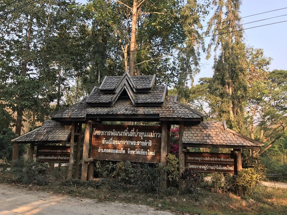 ให้พิจารณาดำเนินการพัฒนาพื้นที่ป่าสงวนแห่งชาติป่าขุนแม่กวง พื้นที่จากหมู่บ้านศาลาปางสัก ตำบลเชิงดอย อำเภอดอยสะเก็ด ไปจดขอบอ่างเก็บน้ำแม่กวง ซึ่งพื้นที่ดังกล่าวได้มีการดำเนินการ ให้ราษฎรทำกินเป็นการชั่วคราว ในเขตป่าสงวนแห่งชาติ (สทก.) แต่ยังมีการบุกรุกของราษฎร ดังนั้น ควรจะได้มีการปรับปรุงให้เป็นพื้นที่ต้นน้ำลำธาร มีความชุ่มชื้นสามารถทำกินได้จะได้ไม่ทำการบุกรุกต่อไป รวมทั้งยังสามารถจัดเป็นที่พักผ่อนหย่อนใจของประชาชนได้อีกด้วย และทรงรับสั่งให้กรมป่าไม้ รับไปดำเนินการเกี่ยวกับการปรับปรุงและพัฒนาการปลูกป่าไม้ โดยให้ปลูกไม้ที่ให้ความชุ่มชื้นเป็นหลัก ให้พยายามปลูกไม้ที่ไม่ผลัดใบ สำหรับพื้นที่ใดที่ไม่สามารถปลูกพืช ดังกล่าวได้ให้จัดหาพันธุ์ไม้ตามความเหมาะสมตามสภาพในพื้นที่ รวมทั้งอาจพิจารณาปลูกไม้ยูคาลิปตัสก็ได้ และให้กรมชลประทานจัดหาแหล่งน้ำ โดยใช้น้ำจากแม่น้ำลาย และให้ทำเป็นอ่างเก็บน้ำขนาดเล็ก ในพื้นที่จำเป็น และทำ CHECK DAM เป็นจุด เพื่อให้เกิดความชื้นเช่นเดียวกันดังประสบความสำเร็จมาแล้วจากการทดลองที่ศูนย์ศึกษาการพัฒนาห้วยฮ่องไคร้ฯ สำหรับหมู่บ้านหรือราษฎรที่อาศัยอยู่ก่อนแล้ว ก็ควรพิจารณาให้อยู่อาศัยหรือทำกินต่อไป โดยให้ทางเจ้าหน้าที่กรมป่าไม้ ควบคุมดูแลไม่ให้มีการบุกรุกเพิ่มเติม แต่ไม่ควรจะเกิน 100 ครอบครัว ทั้งนี้จะต้องทำการสำรวจผู้ที่อยู่อาศัย และทำกินอยู่ก่อนแล้วไว้ และอย่าให้มีการเข้ามาบุกรุกเพิ่มขึ้นอีก