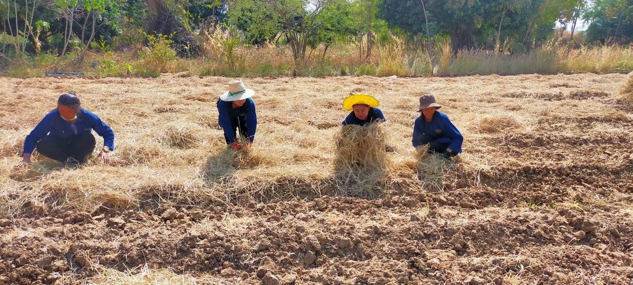 ห่มดินด้วยฟาง เศษหญ้า หรือใบไม้ รอบโคนต้นไม้ประเภทไม้ยืนต้น โดยเว้นให้ห่างจากโคนต้นไม้ 1 คืบ ห่มหนา 1 คืบ–1 ฟุต ทำเป็นวงเหมือนโดนัท โรยด้วยปุ๋ยคอก (มูลสัตว์) บาง ๆ และรดด้วยน้ำหมักชีวภาพผสมน้ำเจือจาง อัตราส่วน 1 : 50-100